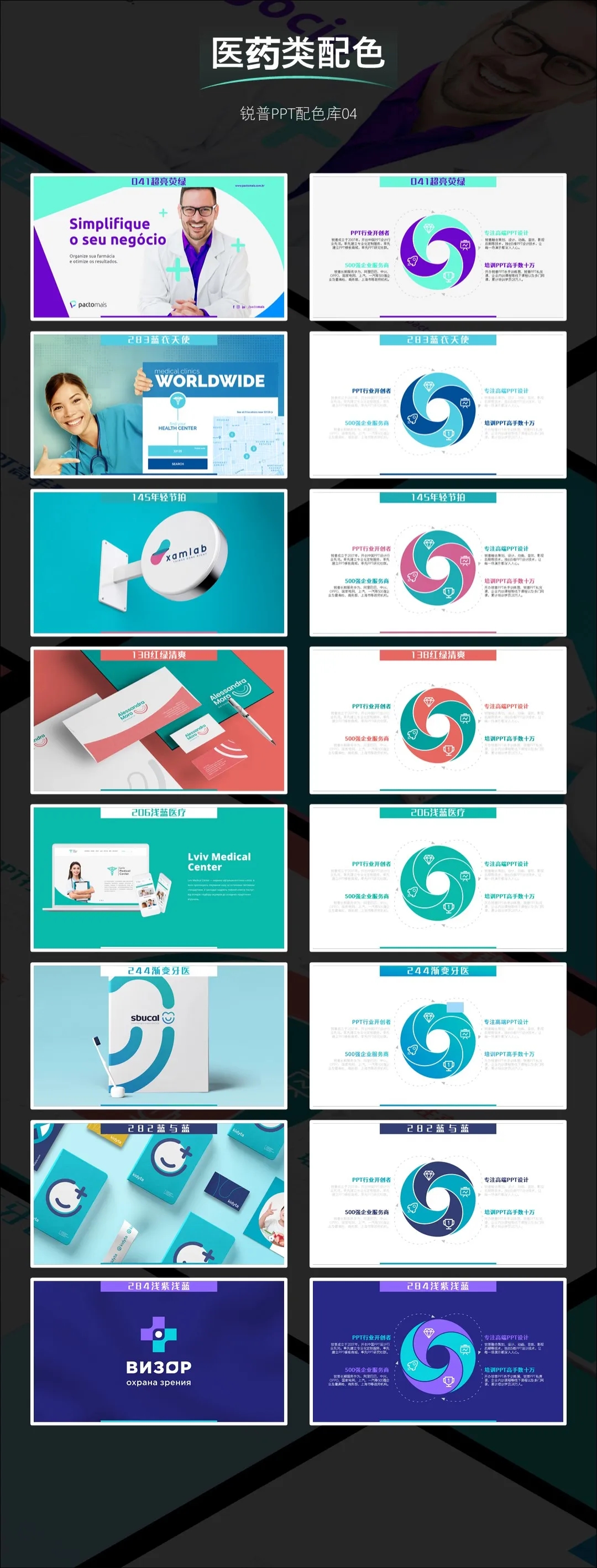 如果你要做医药领域的PPT,那就试试下面这些配色: