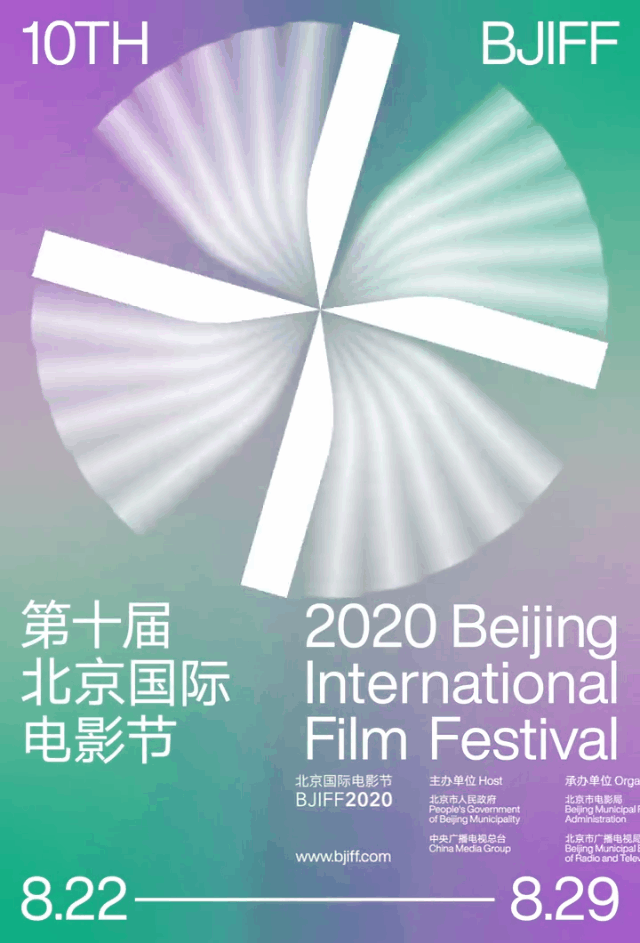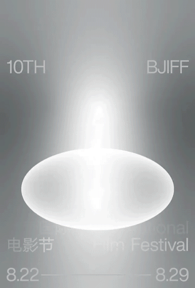 工作室内部都很喜欢这个海报,包括动态效果。工作室的年轻设计师们也会给出一些好玩儿新奇的想法,海报中其实有很多创意,比如:海报里黑白到彩色的转换,其实也象征着电影技术的变化;第十届这个汉字的「十」,在动态中幻化成一个旋转的风车(也是电影节原本的 logo);镜片构成天坛的形态,镜片的堆叠其实就是暗指摄影机的镜头。你们可以注意一下,在风车作为主题的时候呢,风车是白色的,然后底色是不断变化的彩色。而到了天坛作为主体的时候,天坛是彩色的,镜片里反射融汇是彩光,而背景又变成黑灰色。