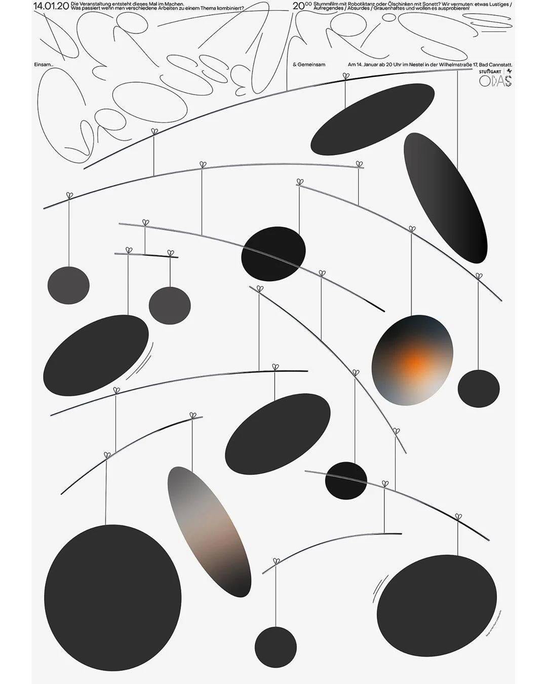 正如在 ODAS 作品中,他和设计师 Nam Huynh 合作,ODAS 是个汇集不同创作者创意聚会,有着线下和线上不同应用场景,Mark 和 Nam 每个月都为他们创作宣传海报。