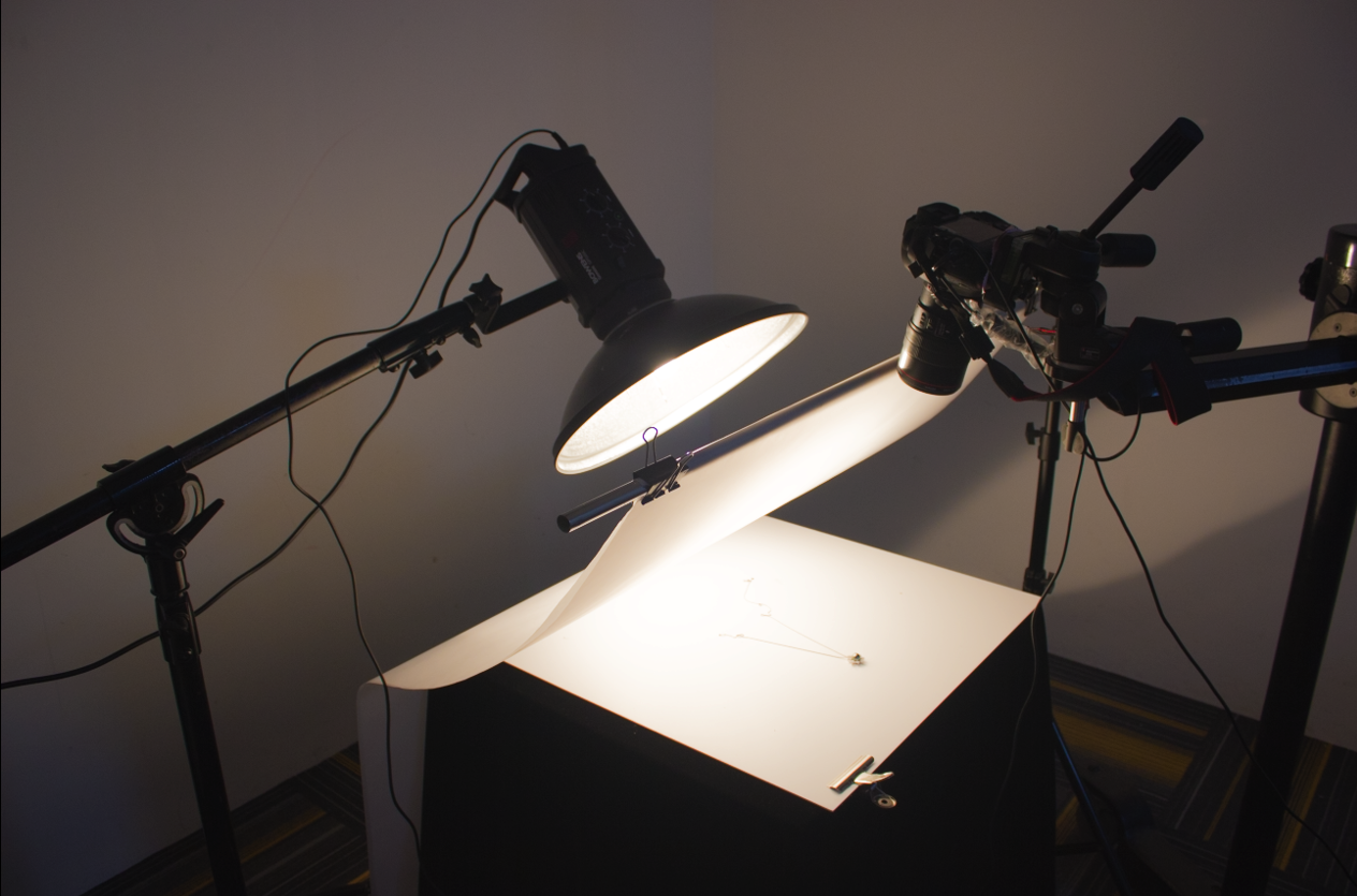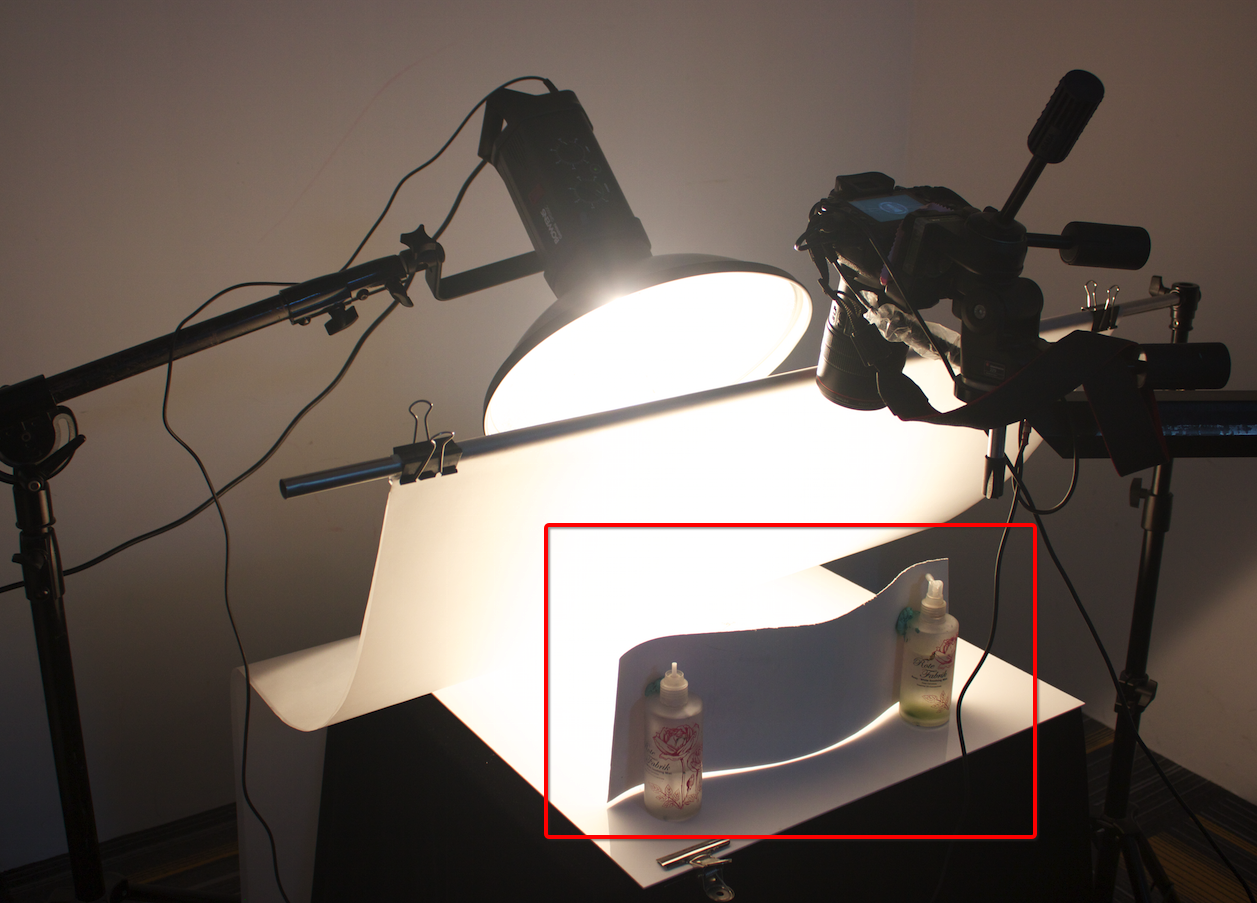 调整好数码相机 柔光纸 闪光灯 操作台 准备就绪开始拍摄,取景器确定产品的拍摄角度