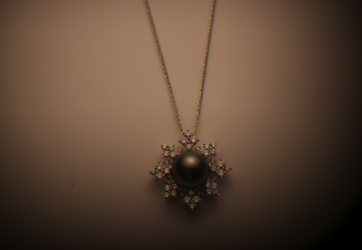 如图所示,我们首先要检查构图是不是和谐、光影是不是自然、链子是不是流畅、珍珠钻石是不是如你所愿,如果不是可以接着调整。