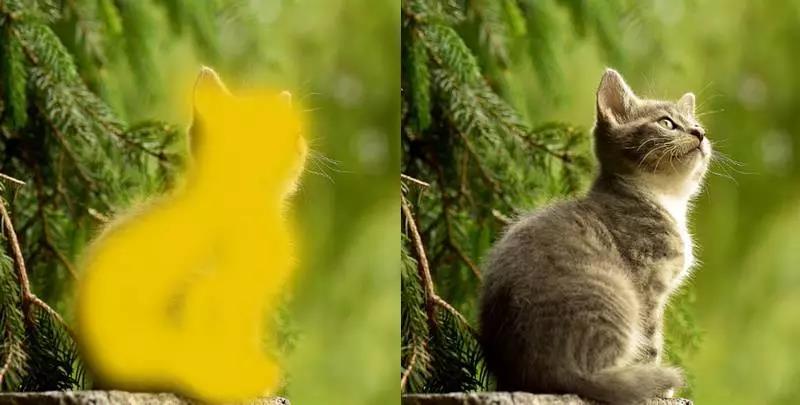 创建一个新的2000×1221像素文档并用白色填充。打开图像并使用移动工具(V)将其拖动到白色画布中。使用自由变换工具(Ctrl + T)调整猫图像的大小以适合文档的大小。