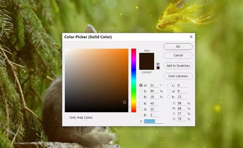 在图层顶部创建一个颜色填充图层,然后选择颜色#281602。将此图层模式更改为排除100%。