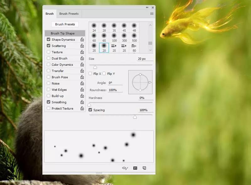 在鱼周围绘制闪闪发光的斑点并记住在绘画时更改画笔的大小。