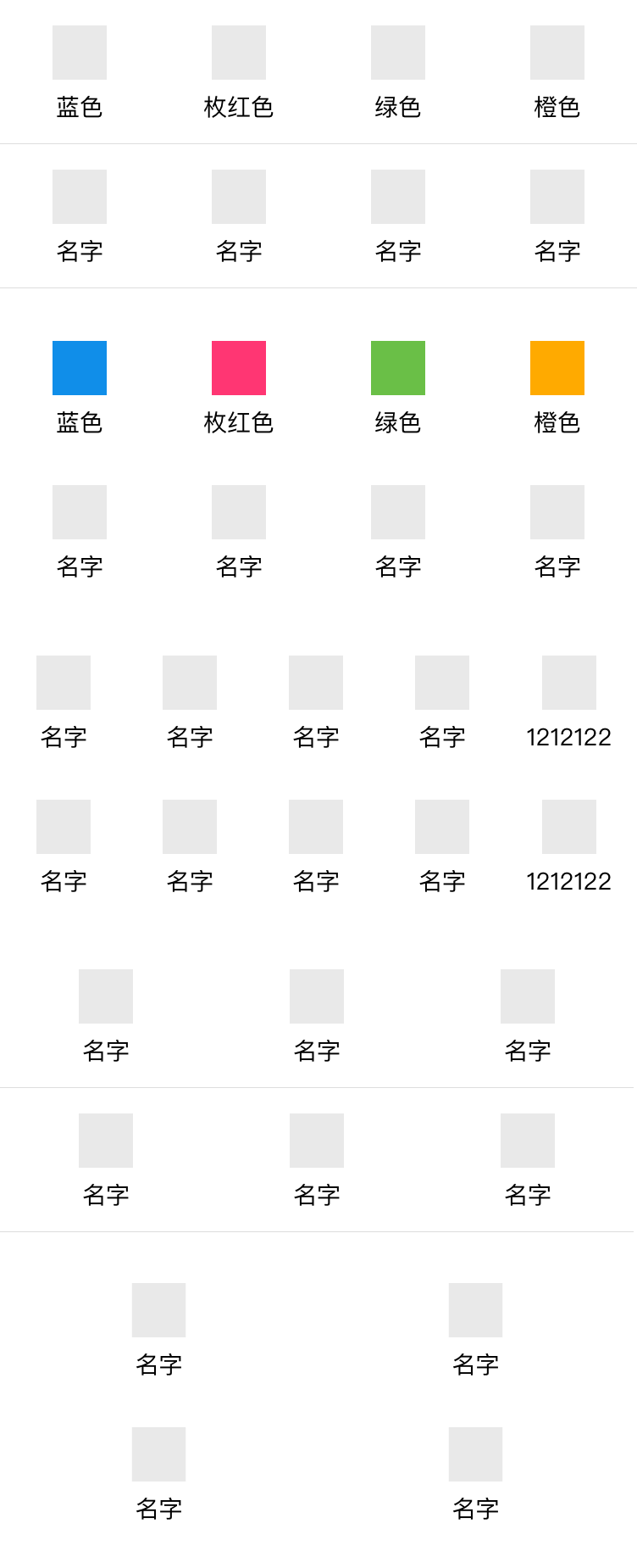 在水平和垂直方向,将布局切分成若干等大的区块。区块中的内容应该是同类元素,如:都是图片,或者都是图标+文字。