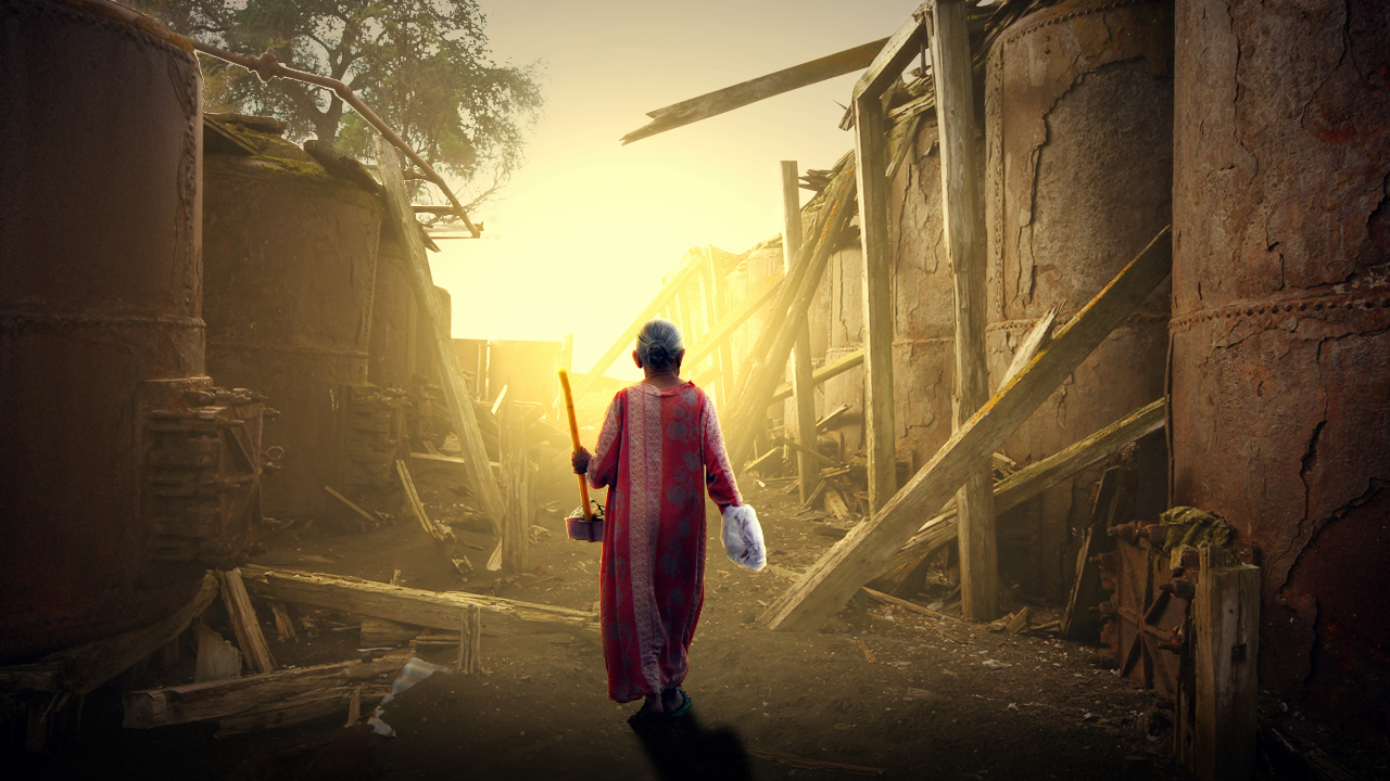走向夕阳的,丢垃圾的老人