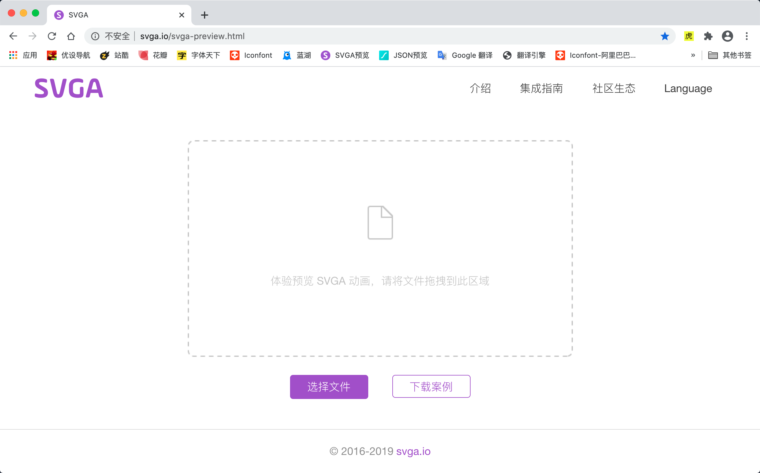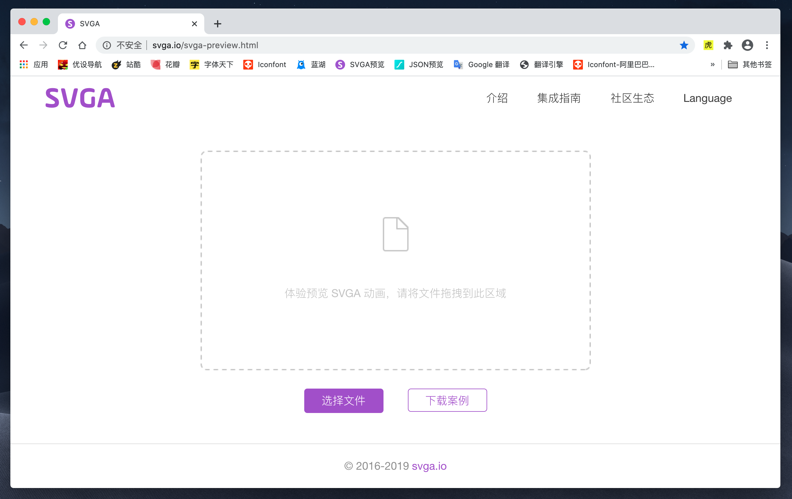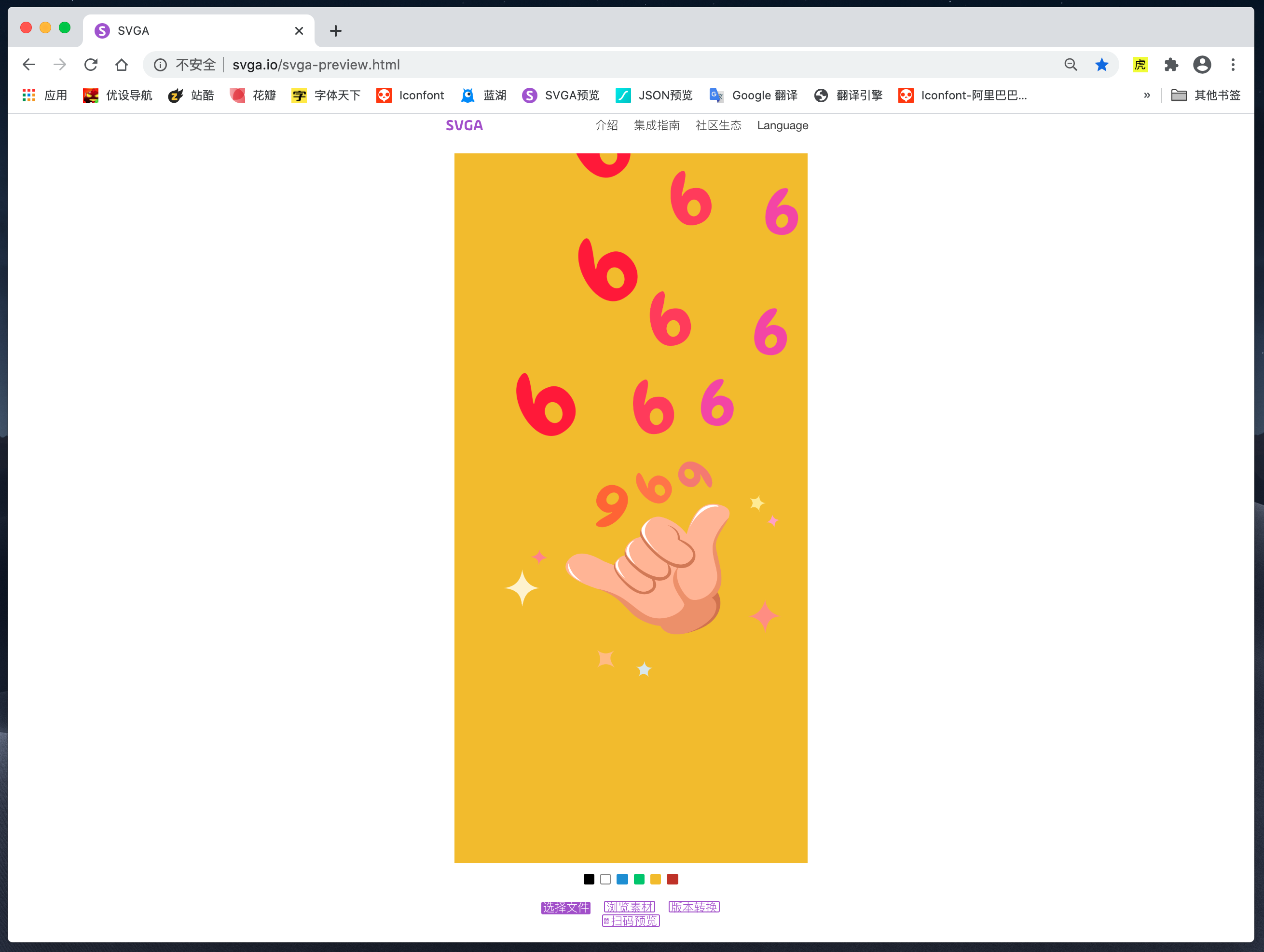 此时,我们输出的SVGA动图效果已完成,可以在输出的路径中查看到已经有了该文件。MAC访达是无法预览SVGA文件的,我们可以在官方提供的预览地址( http://svga.io/svga-preview.html )中进行查看: