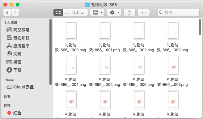 礼物动效-666,导出的素材如图:可以准备齐全一点备用