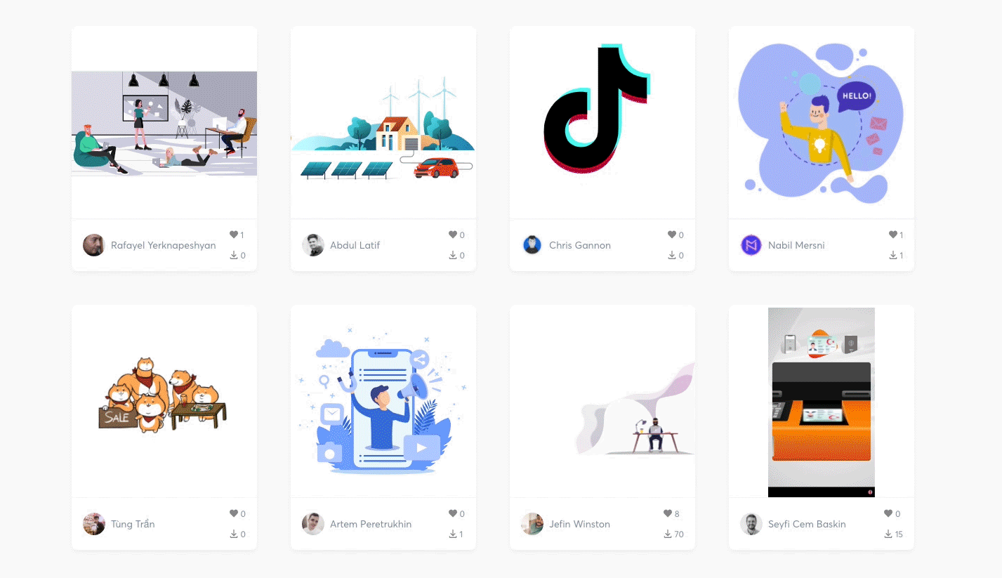 目前,官网首页给出了部分扁平化的矢量插图类动效案例,如下图所示:
