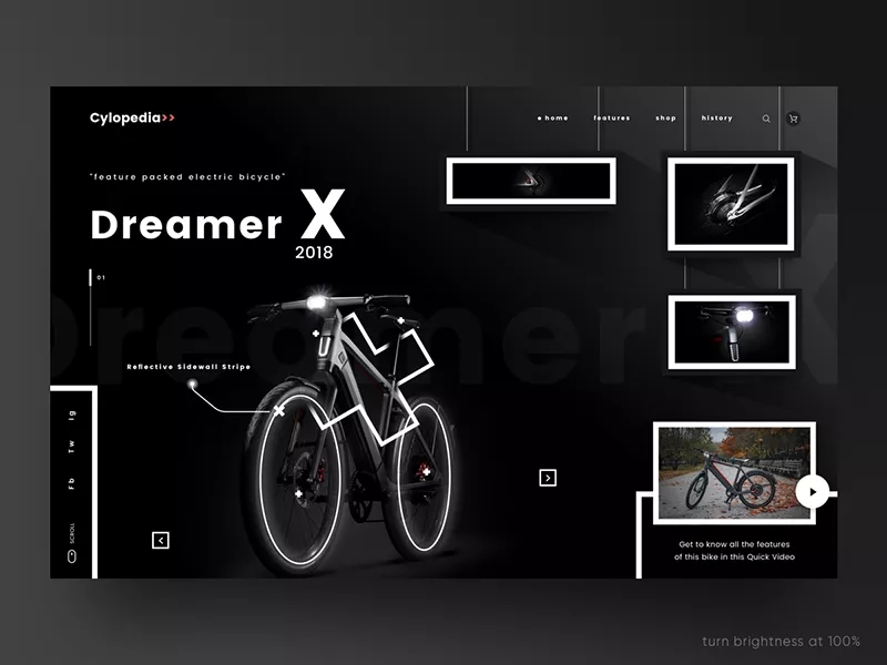 黑白搭配自古以来就是一组经典配色,下面作品中画面以黑色为主色调,用白色勾勒出一些画面元素,譬如:框、线、点,整体画面看起来不仅高端且非常有张力感。