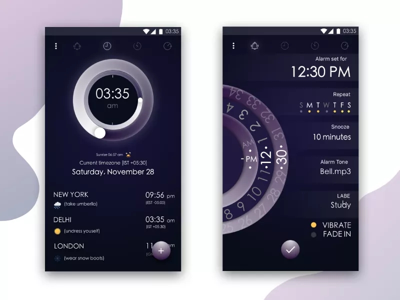 黑+渐变紫的组合搭配,不算是很常见的一种配色,它不像黑橙搭配那般引入注意,但却也有自己的个性。在下面设计作品中,黑色搭配渐变紫色,略带一丝神秘感,画面简约干脆,彰显一种不凡的气质。