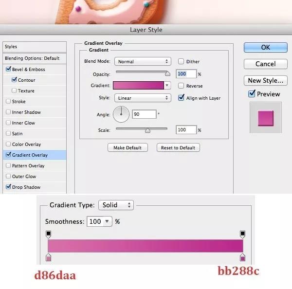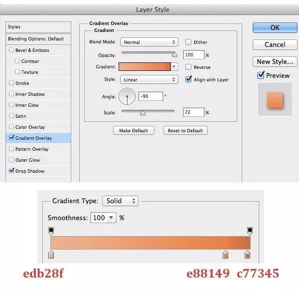 用喜欢的任何颜色填充背景。然后双击打开图层样式并为背景设置此渐变。