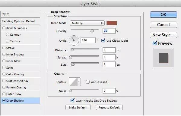 现在稍微改变一下Layer Style。首先从“投影”开始,接下来是“渐变叠加”。