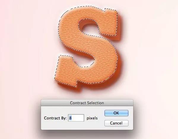需要改变字母“T”的结霜形状,只需要Cmd +点击字母“T”进行选择然后转到选择>修改>合同并设置值= 8px。用喜欢的任何颜色填充。