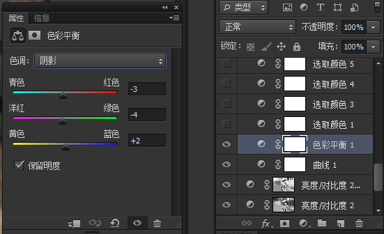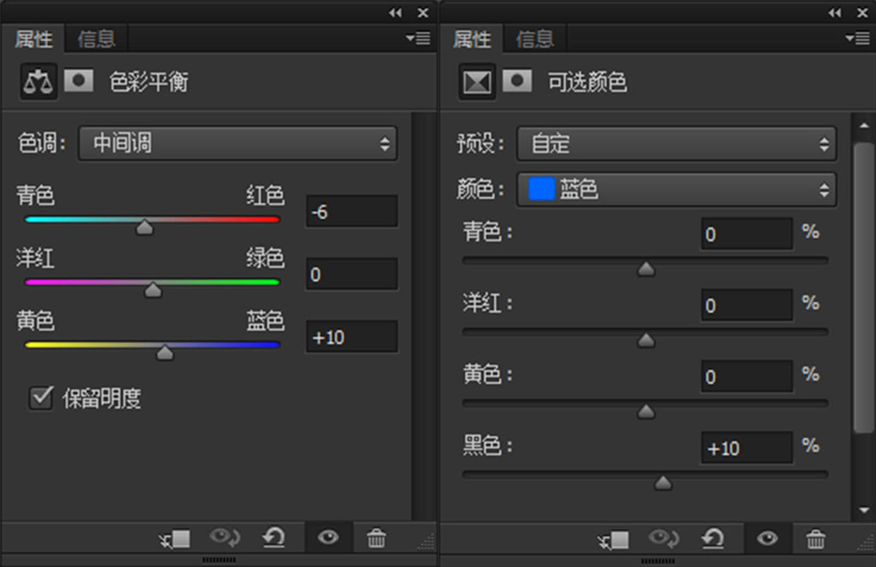 处理到这里后画面还是偏黄了一些,我们对可选颜色和色彩平衡进行些调整。