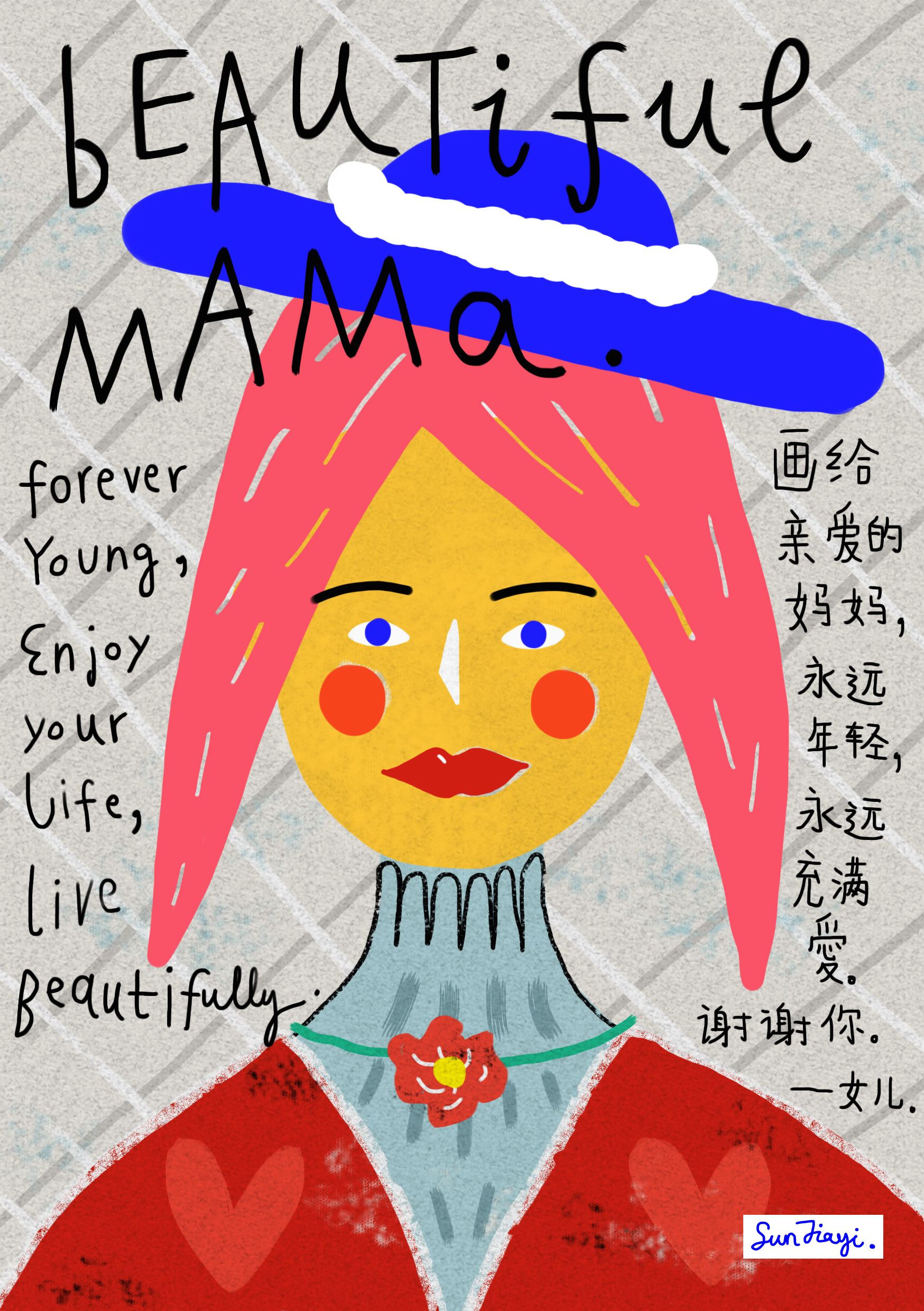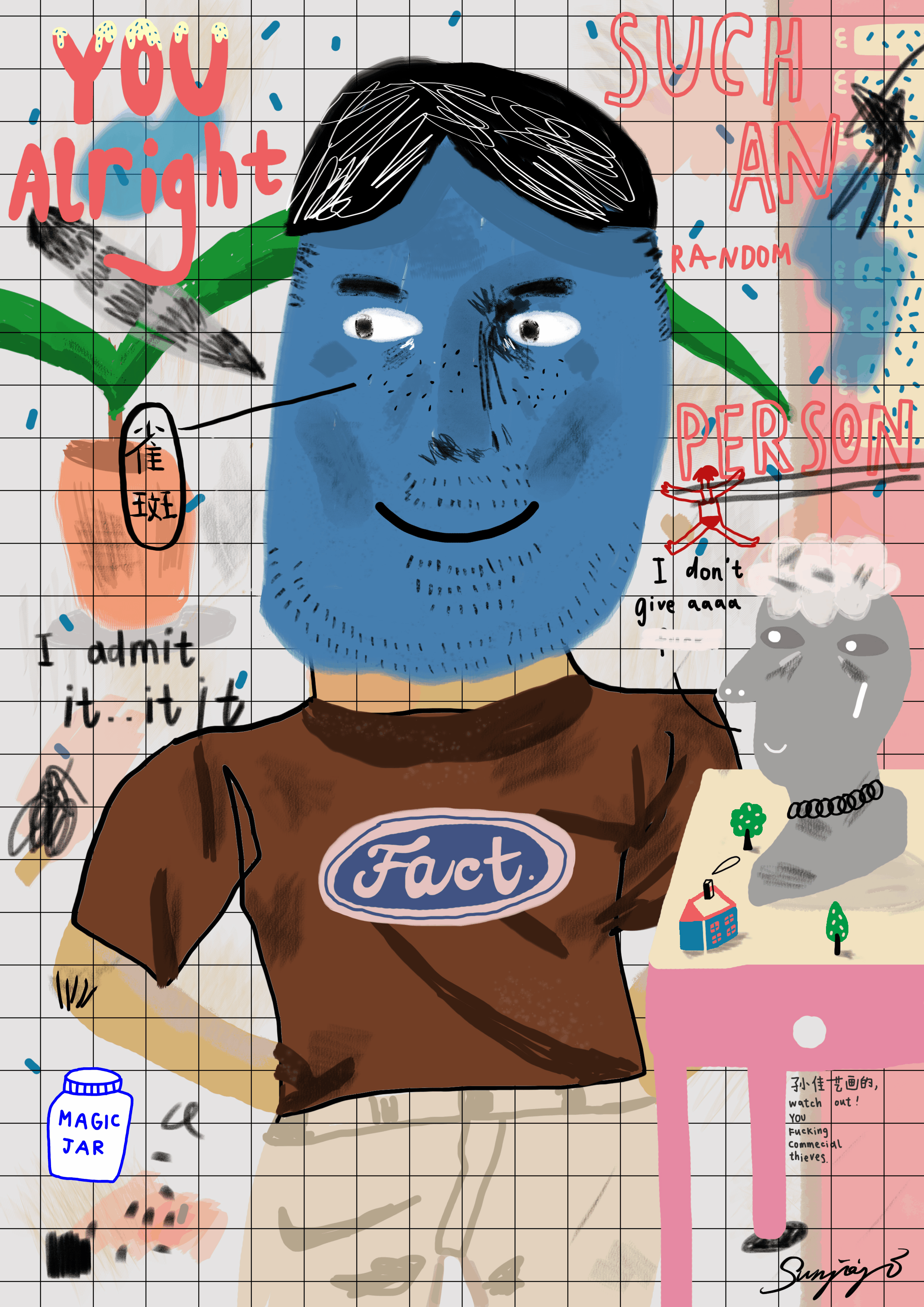 孙佳艺,其名为阿孙、小孙,从英国毕业回来的她如今活跃在不同的插画创作领域,也不忘每天在wb跟大家营业聊天,偶尔还跳个舞。