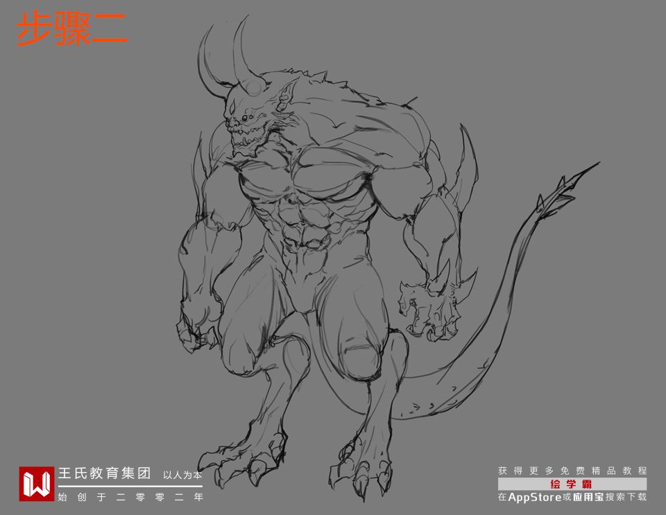 不会画怪物的小伙伴注意了啊,今天旺旺哒教大家画那个双角野兽,比例肌肉啥的,都给我留心学好~