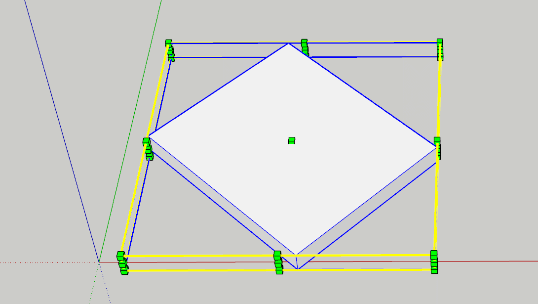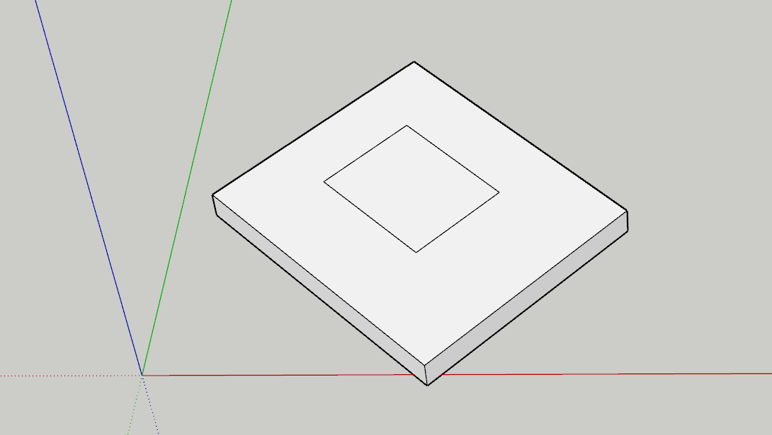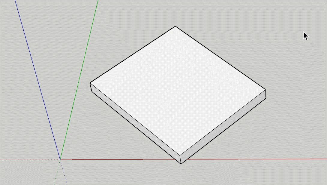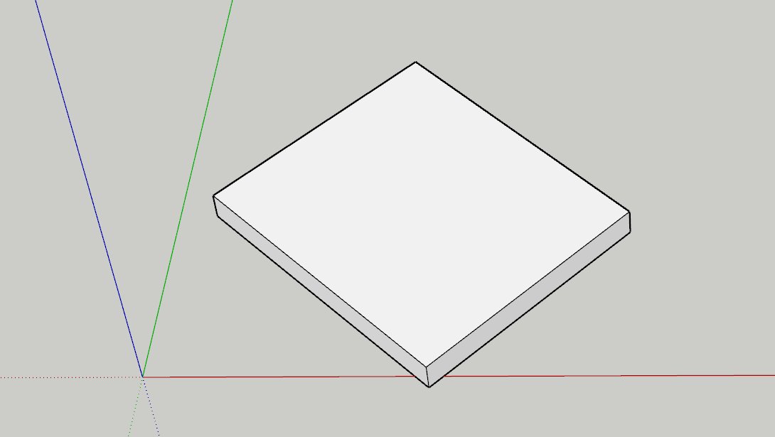 众所周知,在sketchup中,当你新建一个文档后,文件是有一个默认的三轴方向的。在这个默认设置下进行操作,绘制面或推拉体块时,会自动捕捉并按照三轴方向进行绘制。并且,将体块成组后,当选中模型时,会像下图右侧所示;而当选中和三轴不平行的体块时,会像下图左侧所示: