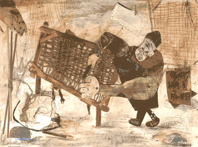 <Tinkle Tinker> 是在JIA比赛之外的一组拼贴动画作品,展现了四类街头手工艺人工作时的场景:修棕梆匠、弹棉匠、修鞋匠、锔瓷匠。在创作这组作品时我用了很多综合材料,比如丙烯颜料,卡纸,黏土,棉花,甚至鞋油。