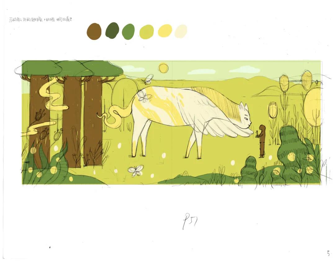 在我的故事里这这些神奇生物虽然很大型,但是看起来一点也不危险。可能也是我自己希望和想要看到的动物跟我们的关系吧:我们从他们的身旁经过,但是不要打扰它们,它们也不会威胁我们,一起友好地生活在同一个环境里。
