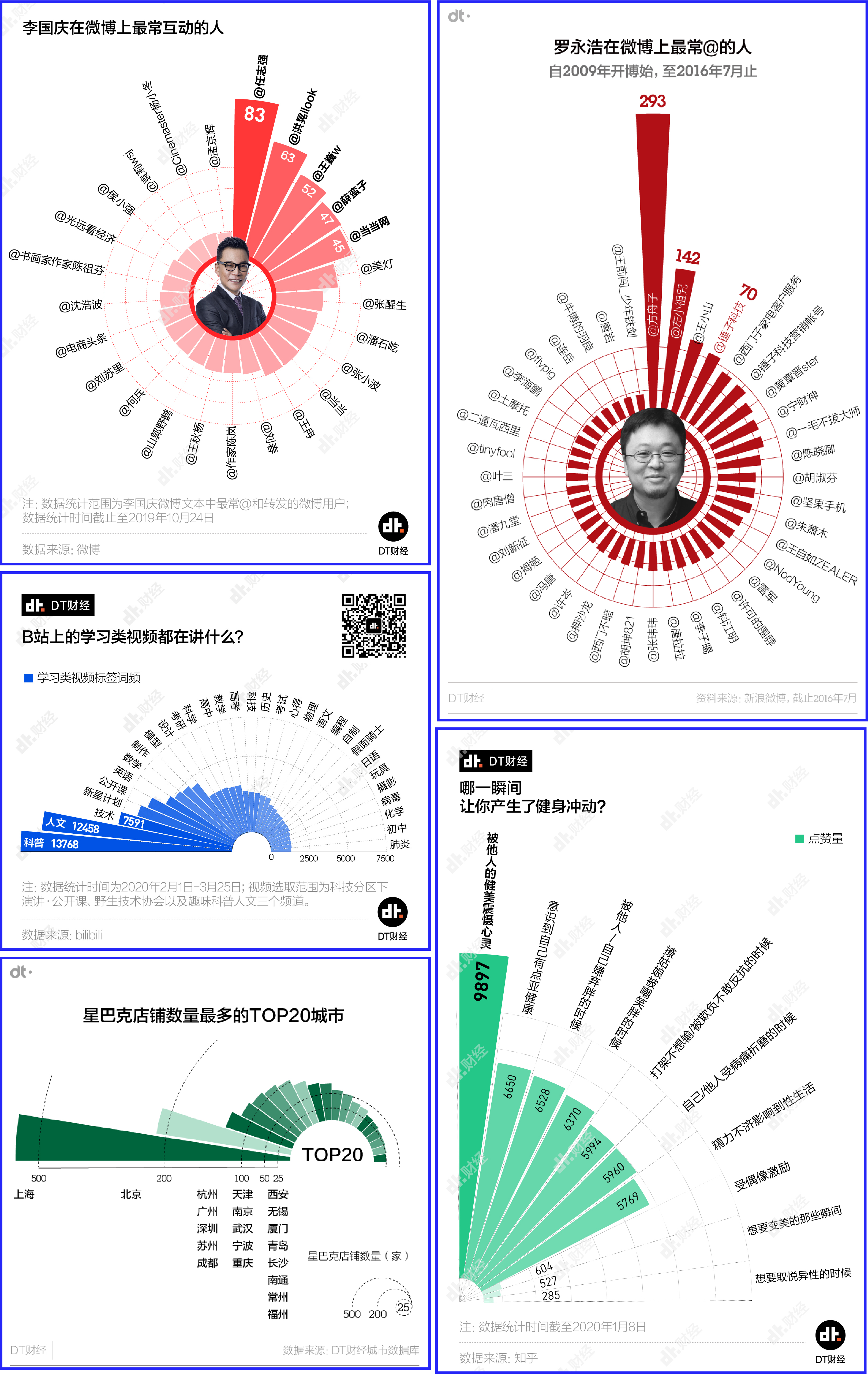 大家可以看出,其实这也是柱状图,但是我们对它进行了变种创新,有360°、180°、还有90°的变种呈现。