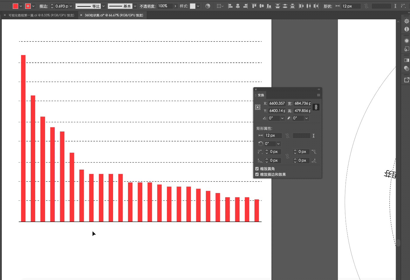 教程分享 | 如何用AI来实现360°的变种柱状图?