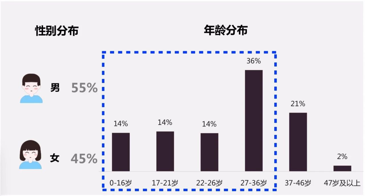 1、浏览器用户27~36岁占比较高,36岁以下占比高达70%以上,整体数据显示用户年龄偏向年轻化。