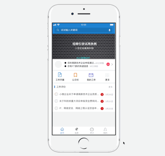 而这款办公管理的APP软件,在一定设计上参考了现阶段的主流软件,在产品设计上遵从于模块化办公,将多个模块组件化植入平台中的思路。
