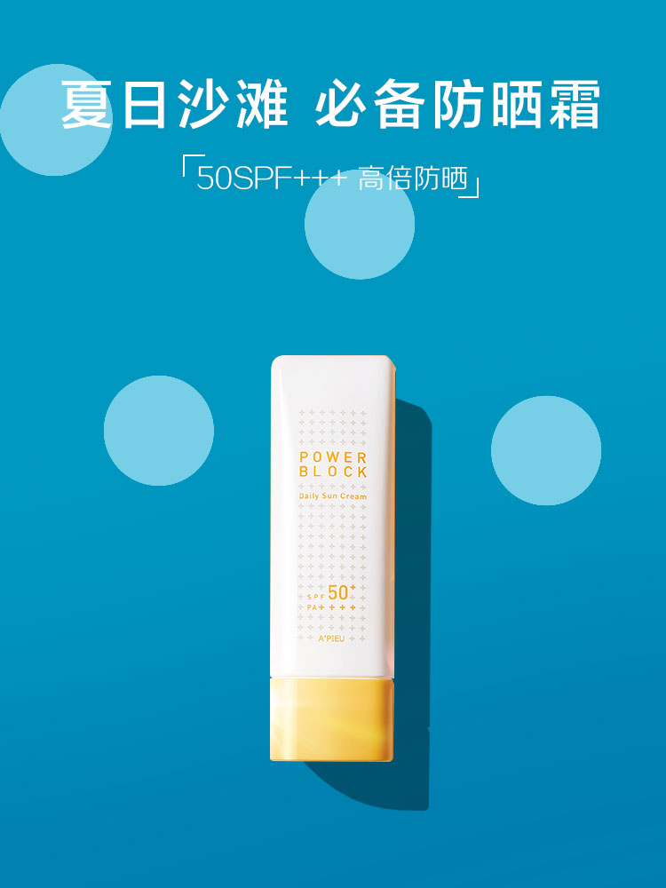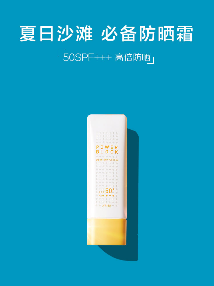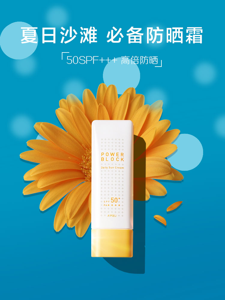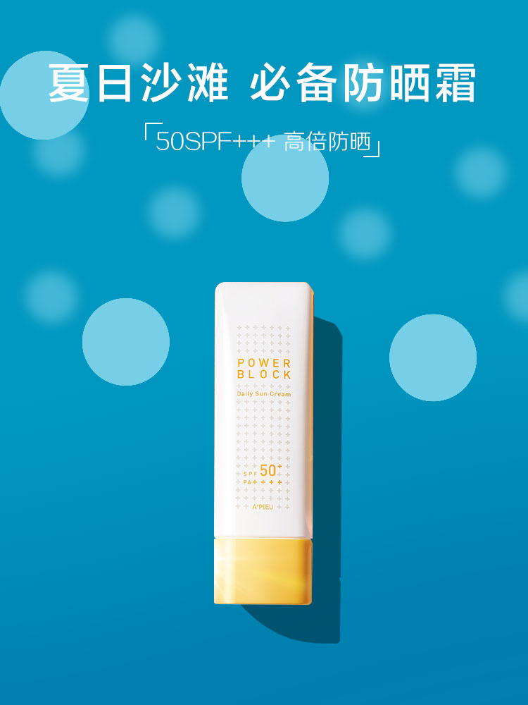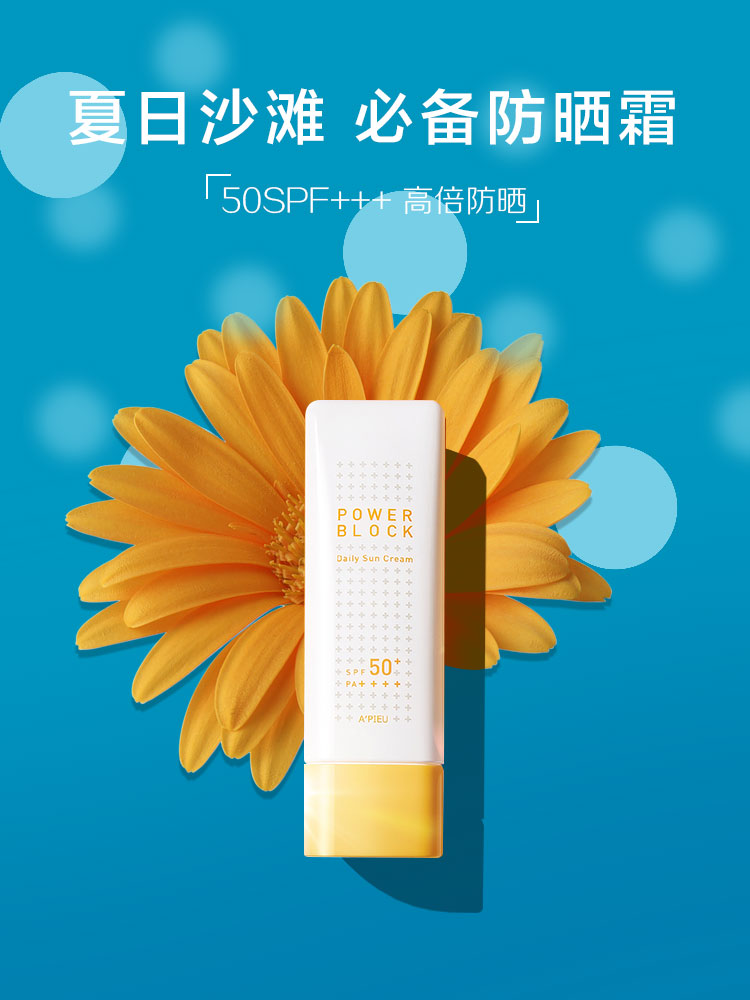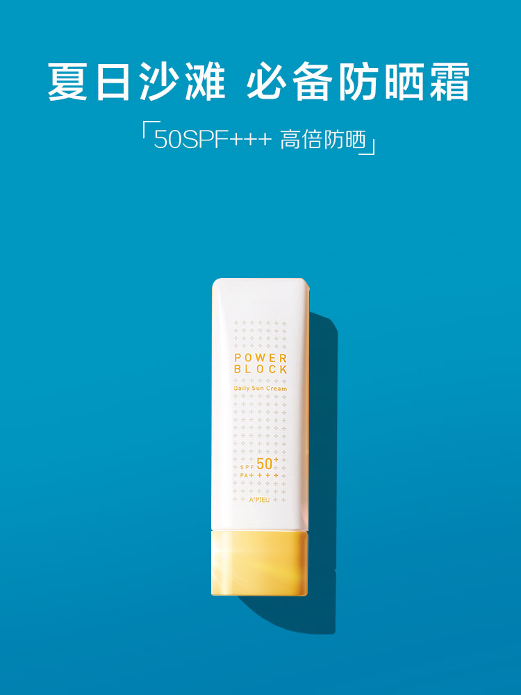 一款主打海滩防晒的防晒霜.风格,简约干净.