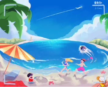 (2) 做好排版,就是配色,这款主打沙滩防晒,那么大家想一下,沙滩上肯定是非常炎热的,能想到什么颜色,天蓝色/黄色,好,然后我们去搜素一下,看下有没有合适的参考颜色,搜索"夏日沙滩",出现以下配色