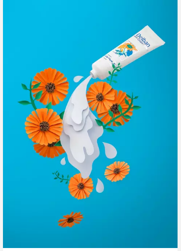 (建议:花朵部分,可采用产品本身的成分要素来表达。因为这张产品是我随手在网上下的,不了解产品成分,就当它有菊花的成分吧)