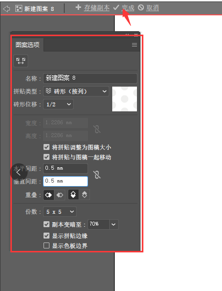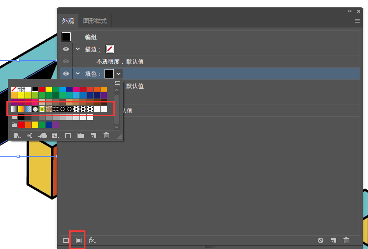 选择其中色块进行:窗口--外观-图案填充,选择添加好的图案,完成