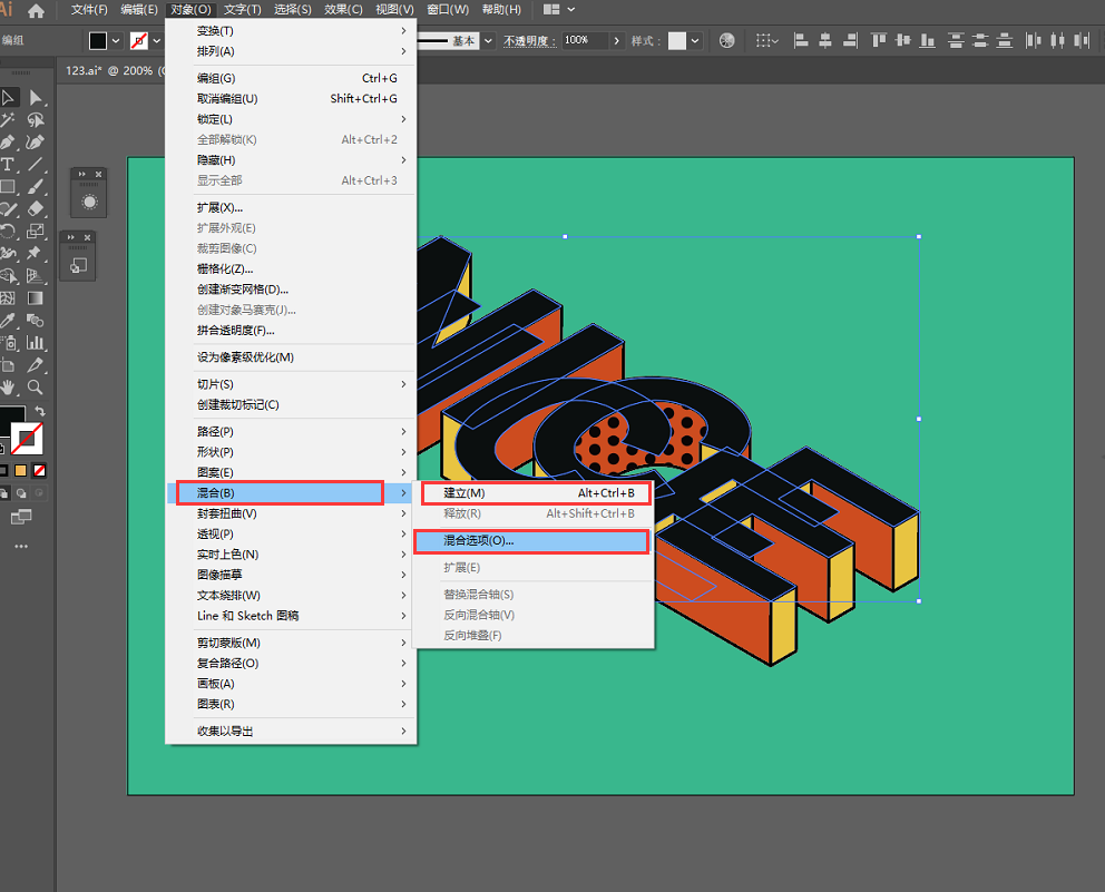 可在工具面板中找到混合工具,也可在对象菜单栏中找到
