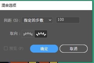 混合工具进行混合,设置好参数,点击确定