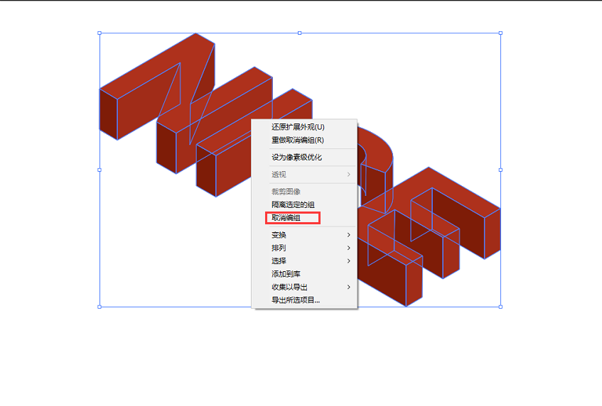 第三步:选择图像右击进行取消编组,这里提醒一下,这里只是取消其中部分编组,
