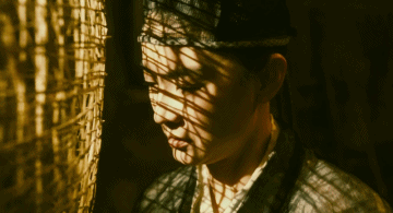 光影通过不断旋转的鸟笼投射在人物脸上。光影的流动,错落有致,同时错乱的光影也影射了人物内心的情绪。