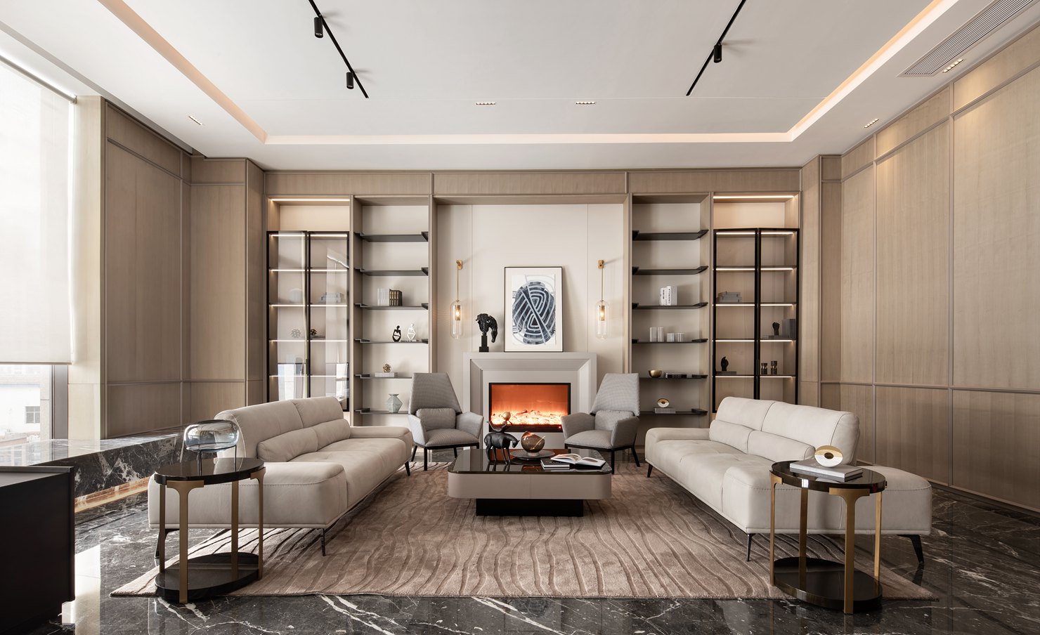 大理石饰面的清硬冷萃,于矛盾中叠搭,和合静美。