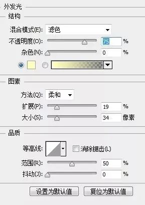 10.为了增加整体气氛和效果加入了一个小高光点,使用矢量圆形工具加上外发光样式,做完感觉的确X格提升不少,参数和效果如下