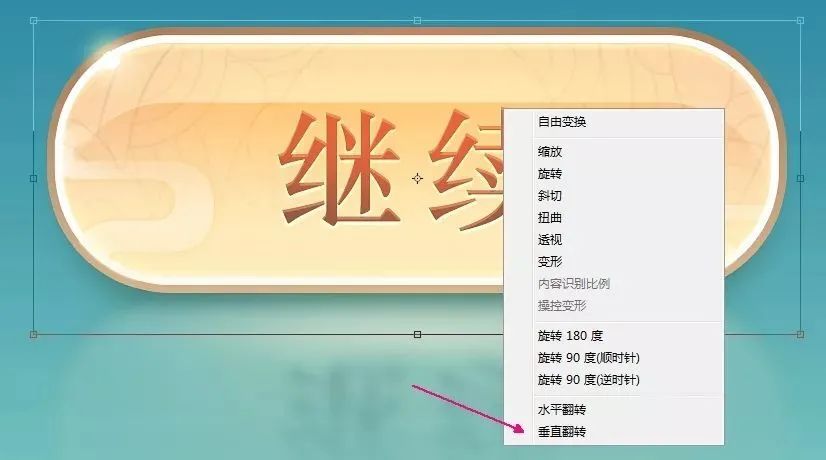为按钮打上继续,字体颜色#7e5743,记住字体要居中对齐(选择按钮底板和字体然后选择移动
