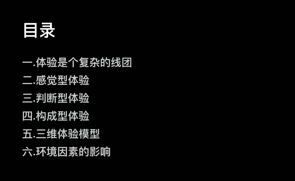 在金振宇看来,体验是一个被揉在一起的线团,复杂纷乱,难以解开,因此他首先对体验进行了分类;有以下三种:感觉型体验、判断型体验、和构成型体验。