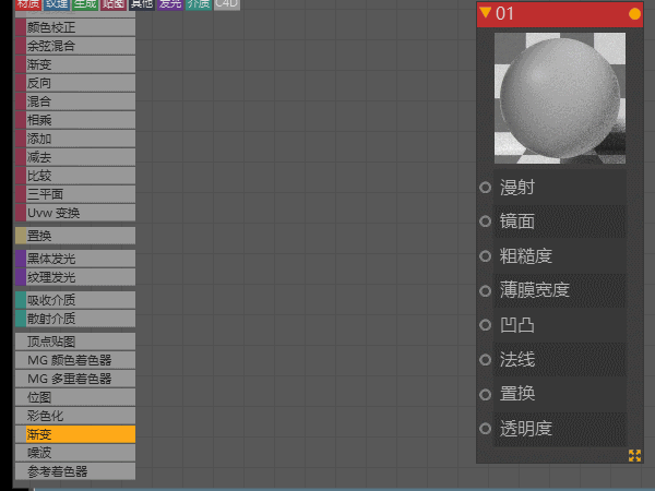 在给对象添加渐变颜色效果时,C4D渐变节点简捷好用,效果也不错。