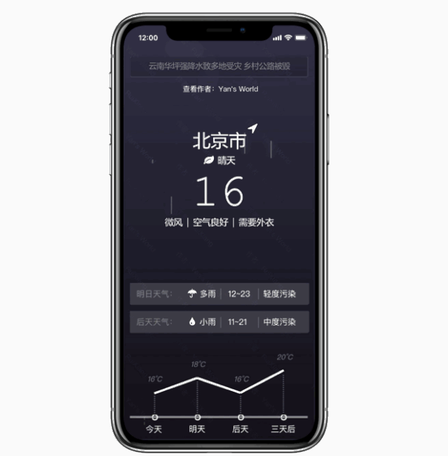 虽然天气类软件看上去设计复杂,但是我们墨刀依然可以做到哦~放个案例: