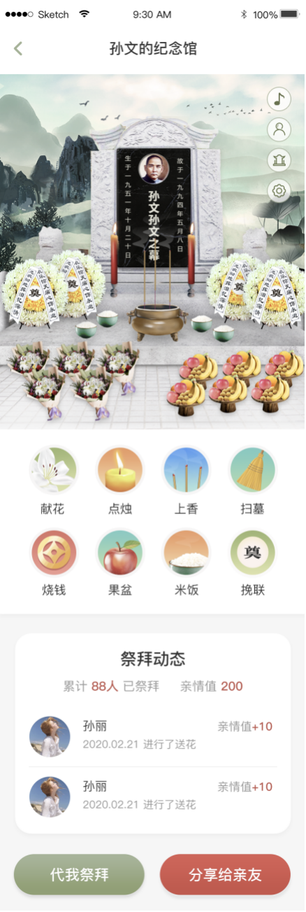 B、新颖简便改善祭祀体验,实现随时随地缅怀亲人或者伟人