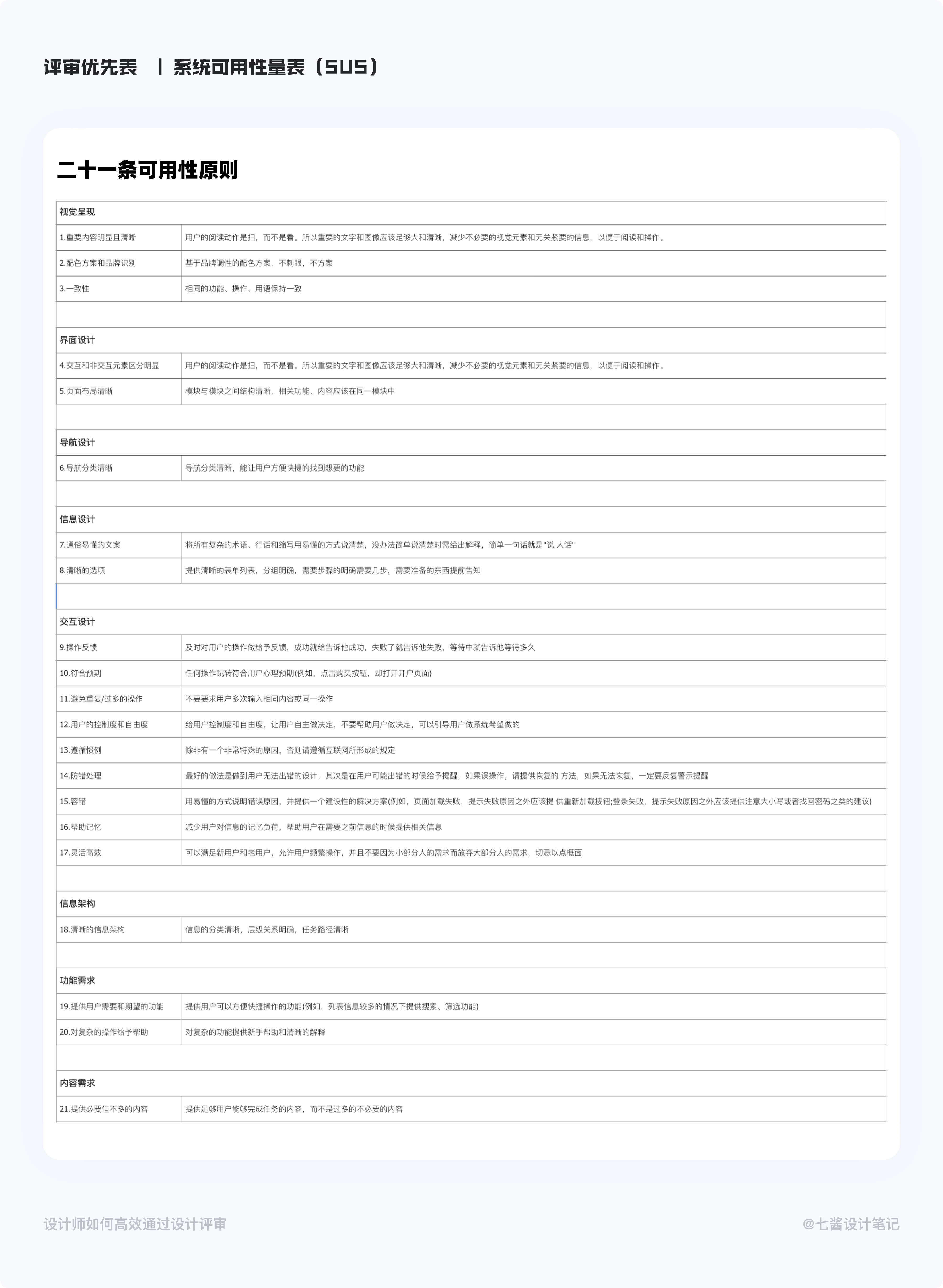 有了这21条,可以让任何没有用户体验知识的人参与到协作启发式评估中来了,一秒变专家了。当然,这21条可用性原则我们也会迭代优化,目的是做到更符合现今产品、更全面的可用性原则。