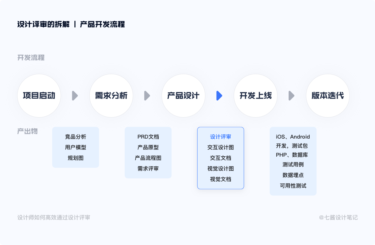 首先想给大家明确一下,设计评审在产品研发各个环节中所处的位置。