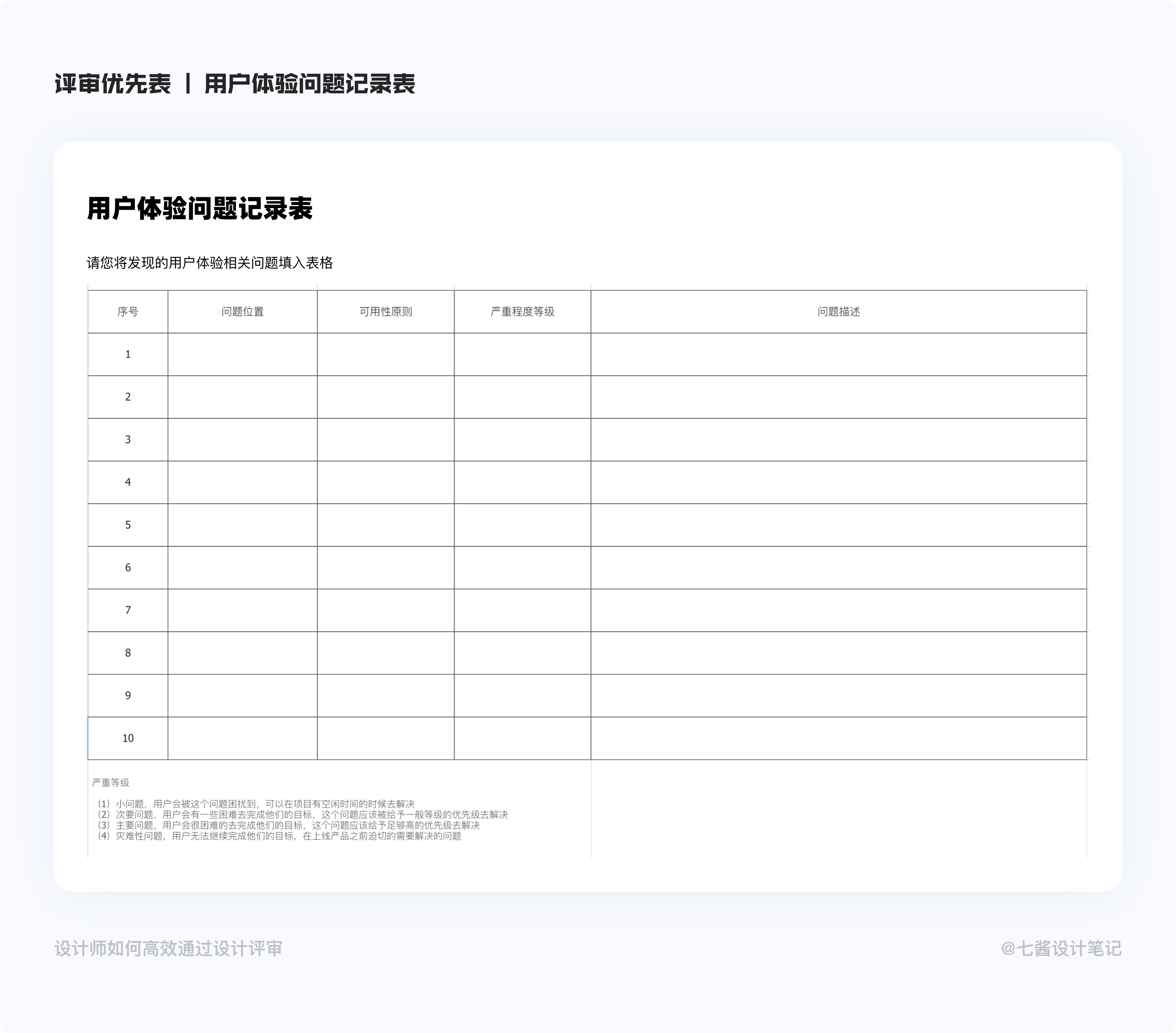 用户体验问题记录表