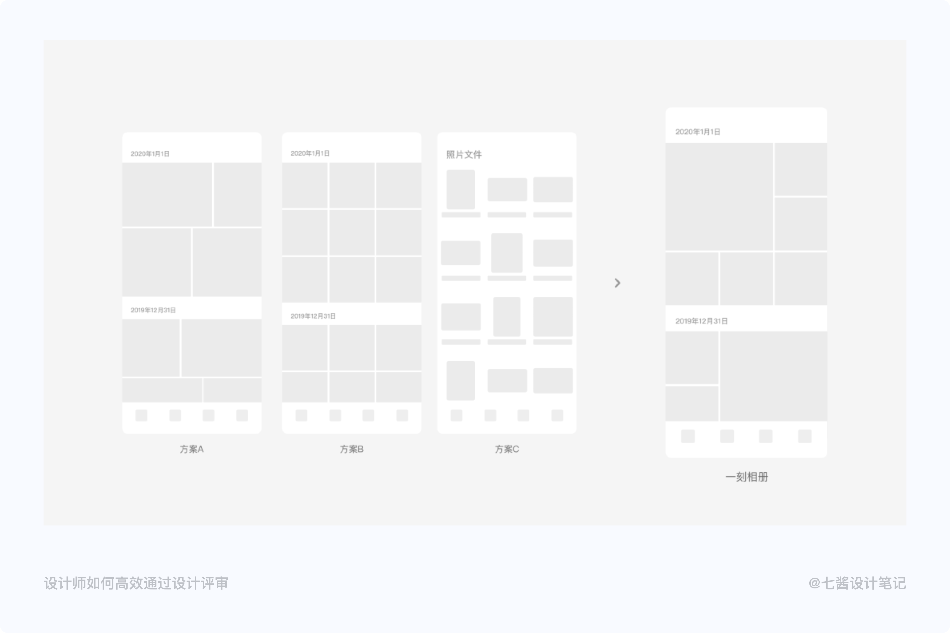 尝试多方案探索。当你拿出几个方案去说,经过多方探索,最后认为方案三是最优解时会比只拿一个方案三去评审更有说服力。或许真正评审时只需要提出你的最终方案,但敲定方案前的方案ABC还是必要的,它将让你进行设计阐述时更有底气。