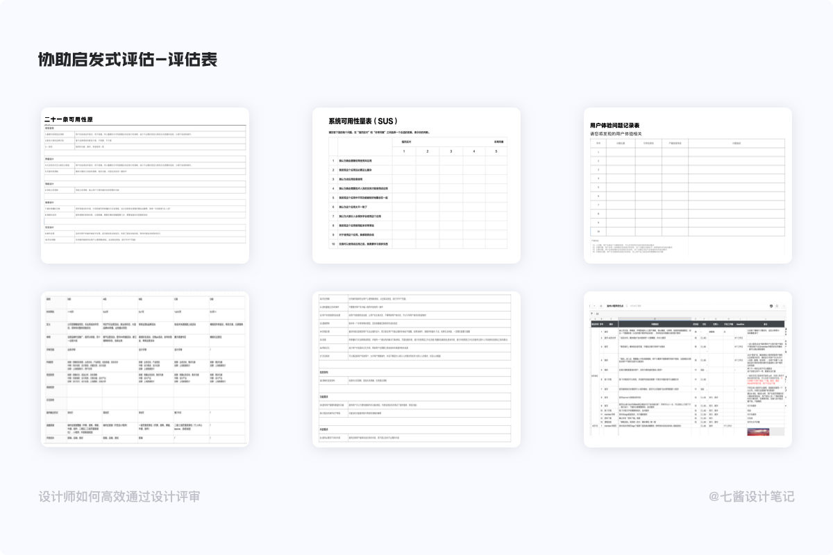 这里评审优先表主要包括:用户体验问题记录表、二十一条可用性原则、系统可用性量表(SUS)