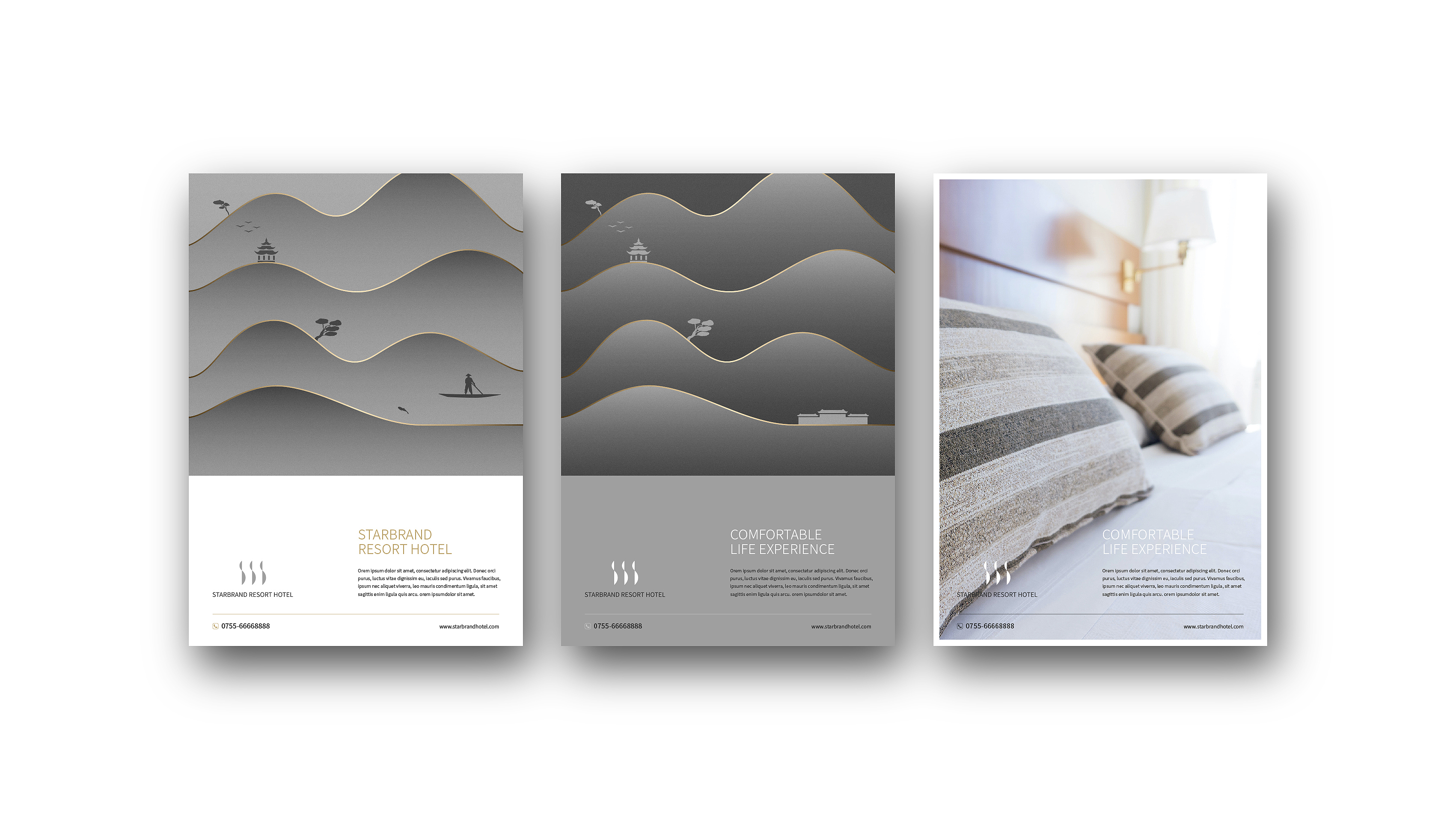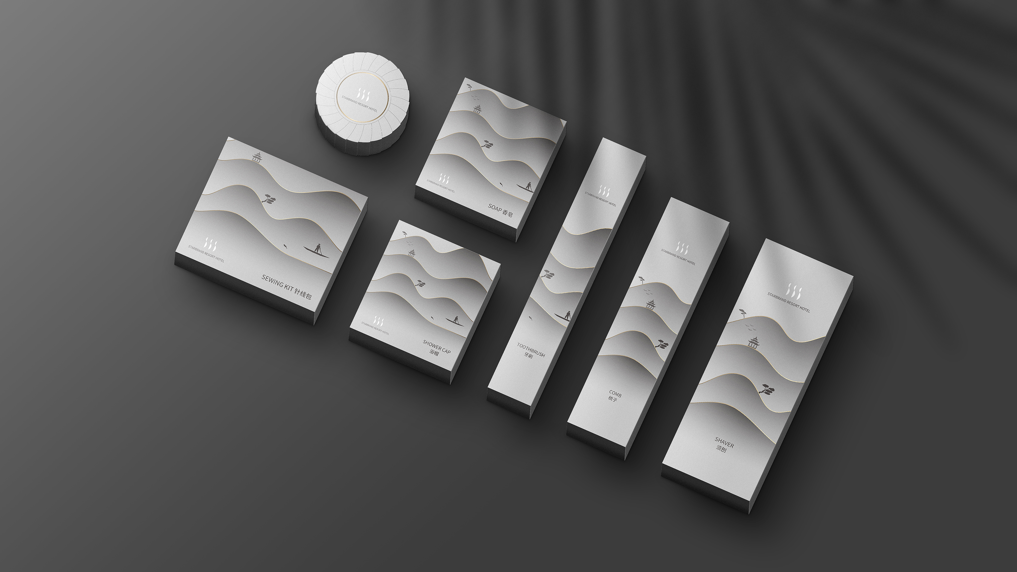 一组高端灰奢华度假酒店VI设计,风格简约大气,该方案含品牌调性、办公应用、酒店用品设计,Ai源文件中,可轻松替换LOGO。