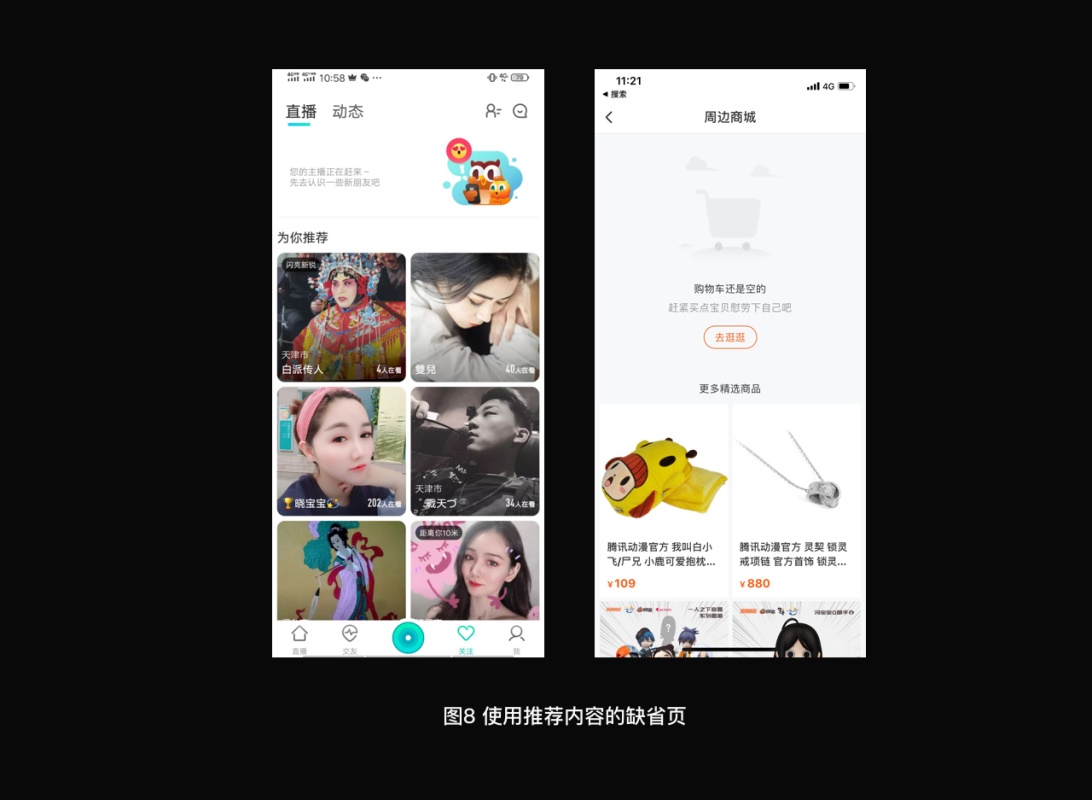 是否使用缓存内容代替缺省状态?根据产品特性来判断,工具类、金融类等同类型产品不适合使用缓存;因为用户交互操作的数据必须保持实时性与真实性。而内容型、电商类等类型产品适合使用缓存来代替缺省状态;理由:用户消费内容的转化路径是先消费后转化的行为特点,不存在系统操作门槛,且缓存内容可以代替产品的缺省状态,安抚用户操作失败所带来跳出率过高的风险。
